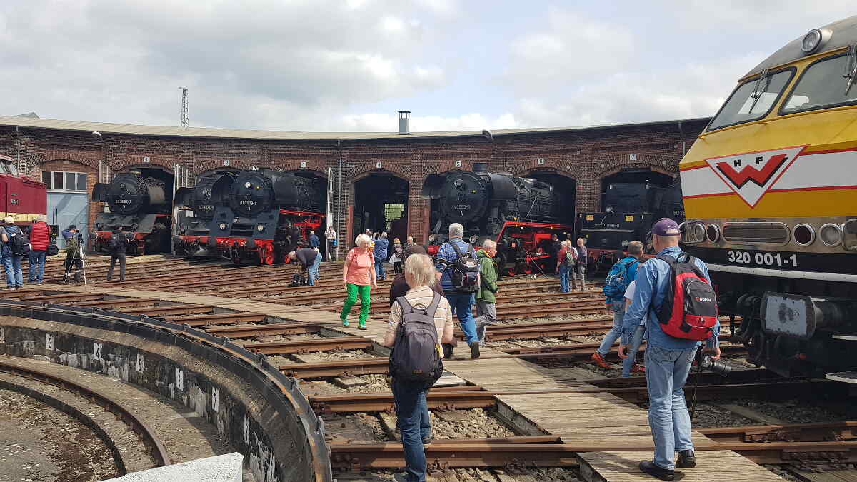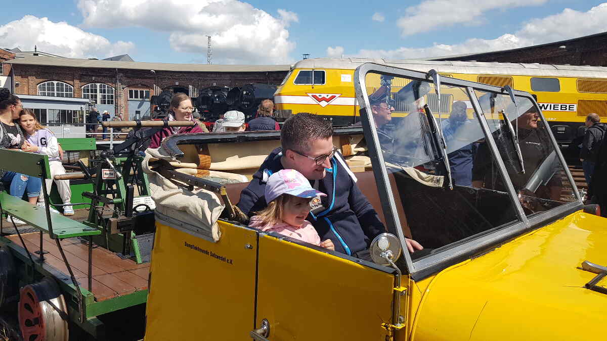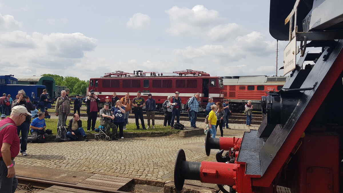 Erschöpft, aber überglücklich schauen wir auf das vergangene Wochenende zurück. Es war bisher sicher in jeder Hinsicht ein Spitzenerlebnis nicht nur für uns, sondern auch für unsere Besucher. So war der Samstag der Tag der Rekorde. Bei bestem Wetter besuchten uns gut 1.700 Menschen aus nah und fern, so viele wie noch nie an einem Tag. Das hatte wahrscheinlich seinen Grund darin, dass wir auch eine Superlative an Exponaten zu bieten hatten, von denen viele in Betrieb vorgeführt werden konnten. Insgesamt waren neben unseren eigenen Fahrzeugen vier auswärtige Dampfloks, drei Dieselloks, eine Elektrolokomotive und zwei Triebwagen zu bestaunen.