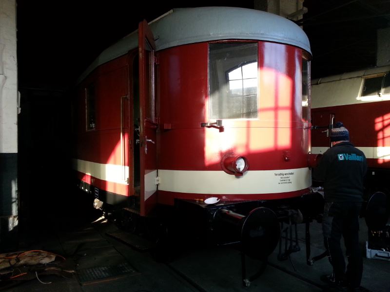 Auch gehen die Arbeiten an unserem Beiwagen VB 197 805 weiter. Der Verein wünscht sich, das Fahrzeug wieder für den öffentlichen Verkehr herrichten zu können. Dazu wurde nun erst einmal das Betriebsbuch gesichtet, denn ohne dieses Papier, das eine ähnliche Funktion wie der Fahrzeugbrief eines Autos hat, wäre eine Neuzulassung administrativ sehr schwierig und aufwändig.