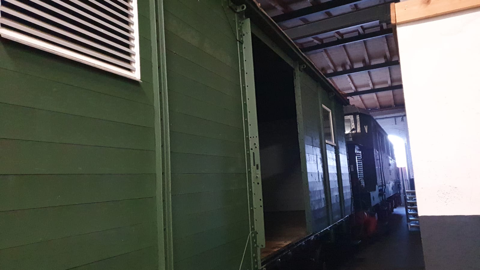 In die Endphase der Komplettierung kommt nun auch unser Güterwagen der Bauart G10. In mühevoller Kleinarbeit haben die Kollegen ihn gründlich saniert. So wurden die Achsen und die Federung ausgebaut und überholt und die meisten Holzteile neu angefertigt. Als letztes wurde der metallene Rahmen der zweiten Seitentür gerichtet und neu lackiert, damit jetzt die Holzfüllung eingebaut werden kann. Wenn die Tür eingebaut und die Beschriftung des Wagens angebracht ist, ist der Wagen ausstellungsreif fertiggestellt.