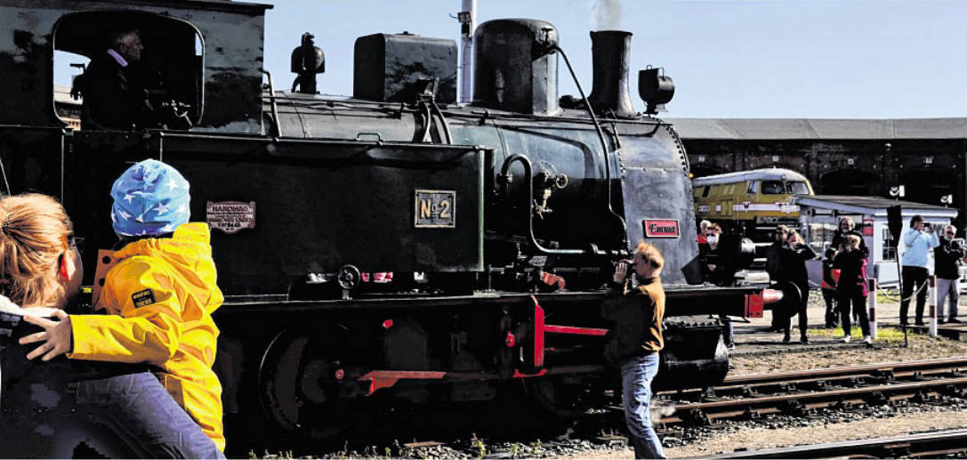 Viele Schaulustige wie dieser Junge und seine Mutter bestaunten die Dampflok Emma und viele weitere fahrtüchtige Eisenbahnoldtimer.