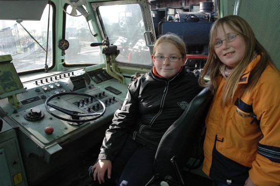 Finden Dampflokomotiven am besten, sahen sich aber auch im Führerstand einer alten Diesellok um: "Ganz schön großer Motor", fanden Fabienne und Celine Resener. |