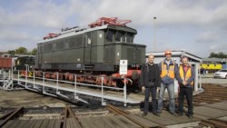 Seit gestern steht das rollfähige Ausstellungsstück als Dauerleihgabe im Wittenberger Lokschuppen. "Die Baureihe E44 war eines der Urgesteine der Elektrifizierung der Eisenbahn in Deutschland", sagt Dirk Endisch vom Verein Historischer Lokschuppen.