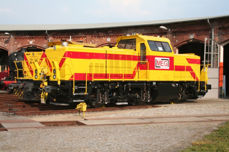 Auf die Drehscheibe vor dem Lokschuppen haben Vereinsmitglieder mittlerweile eine Diesellok 118 692 - 3 gefahren. Kameras fangen an zu klicken. Es ist quasi ein Vorspiel für die abendliche Fotoschau mit extra dafür arrangierten Museumsfahrzeugen.