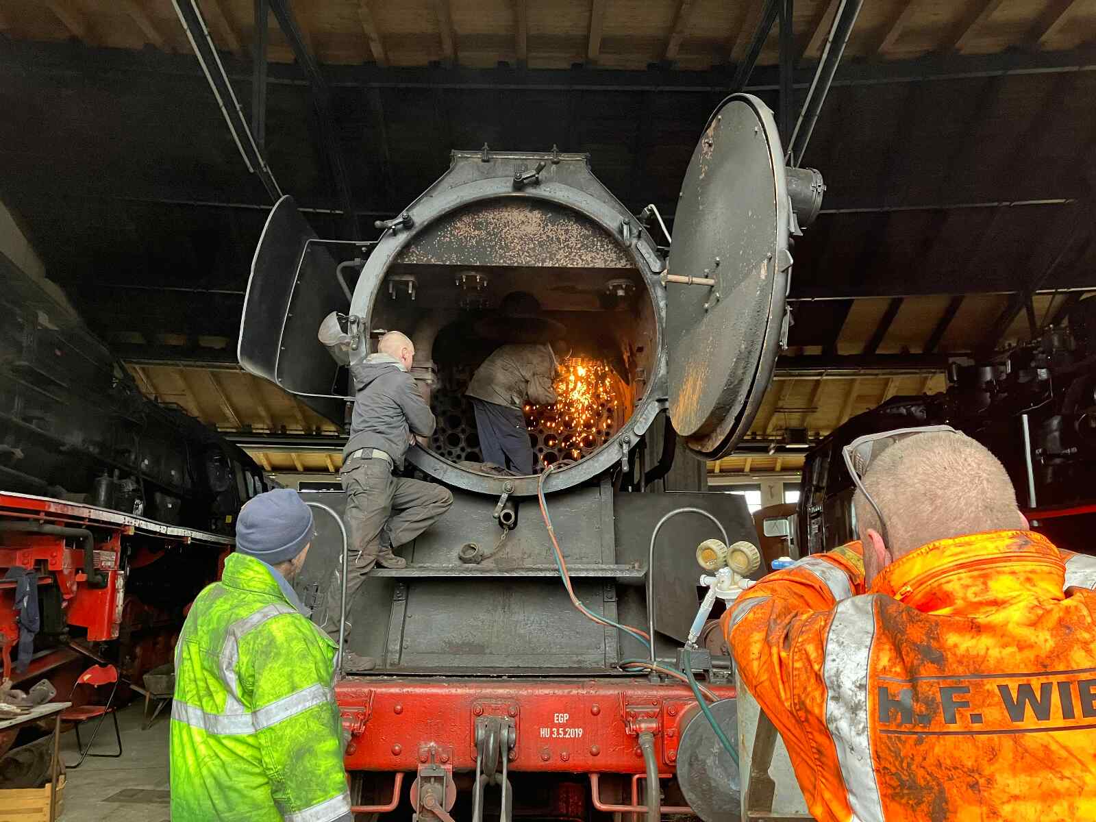 Zu den wenigen Dingen, die wohl im Januar im Lokschuppen möglich sein werden, wird die Prüfung des Kessels der Dampflok 50-3570 sein, der größten im Museum. „Ich hoffe, der Prüfer kommt in den nächsten Tagen. Diese Prüfung ist vorgeschrieben und fällt damit unter die Sonderregel der unumgänglichen Instandhaltungen und Überprüfungen“, so Kathke.